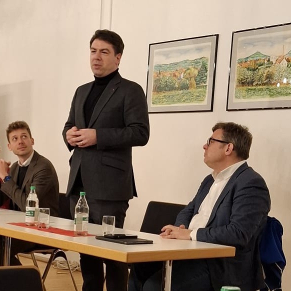 Bundestagskandidat Florian Zarnetta, parl.Staatssekretär Thomas Hitschler, Bundestagsabgeordneter Dr.Martin RosemannFehlt der Politik der Mut? Ein Austausch über Sicherheit für Deutschland und Europa mit dem Parlamentarischen Staatssekretär im Bundesministerium der Verteidigung Diesen Dienstagabend lud der SPD-Ortsverein Bisingen gemeinsam mit dem SPD-Bundestagskandidaten Florian Zarnetta zu einem Austausch mit dem Parlamentarischen Staatssekretär im Bundesministerium der Verteidigung, Thomas Hitschler MdB, ein.